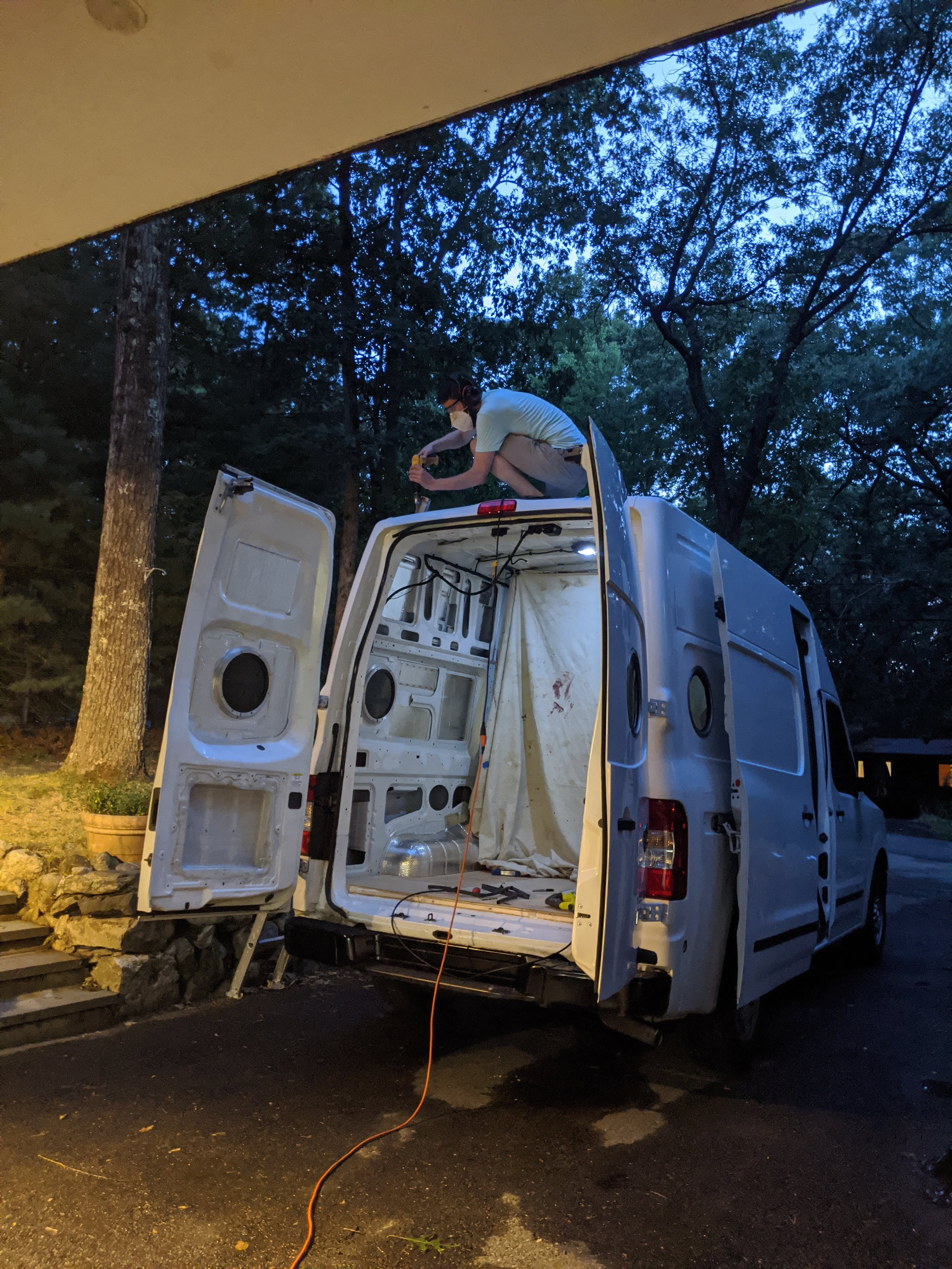 Alright folks, as promised, here is the update that is much more exciting than the last one, at least we think it is! We recently both took a week off from work, and after a much needed few days in the mountains we took the leap on one of the more intimidating steps of this build: installing the roof fan and vent. For the sake of good ventilation and air flow, we installed a fan near the front and a vent near the back. There are some great tutorials for this online so we were confident we knew what to do, but the thought of actually cutting holes in the roof was nerve-racking nonetheless.