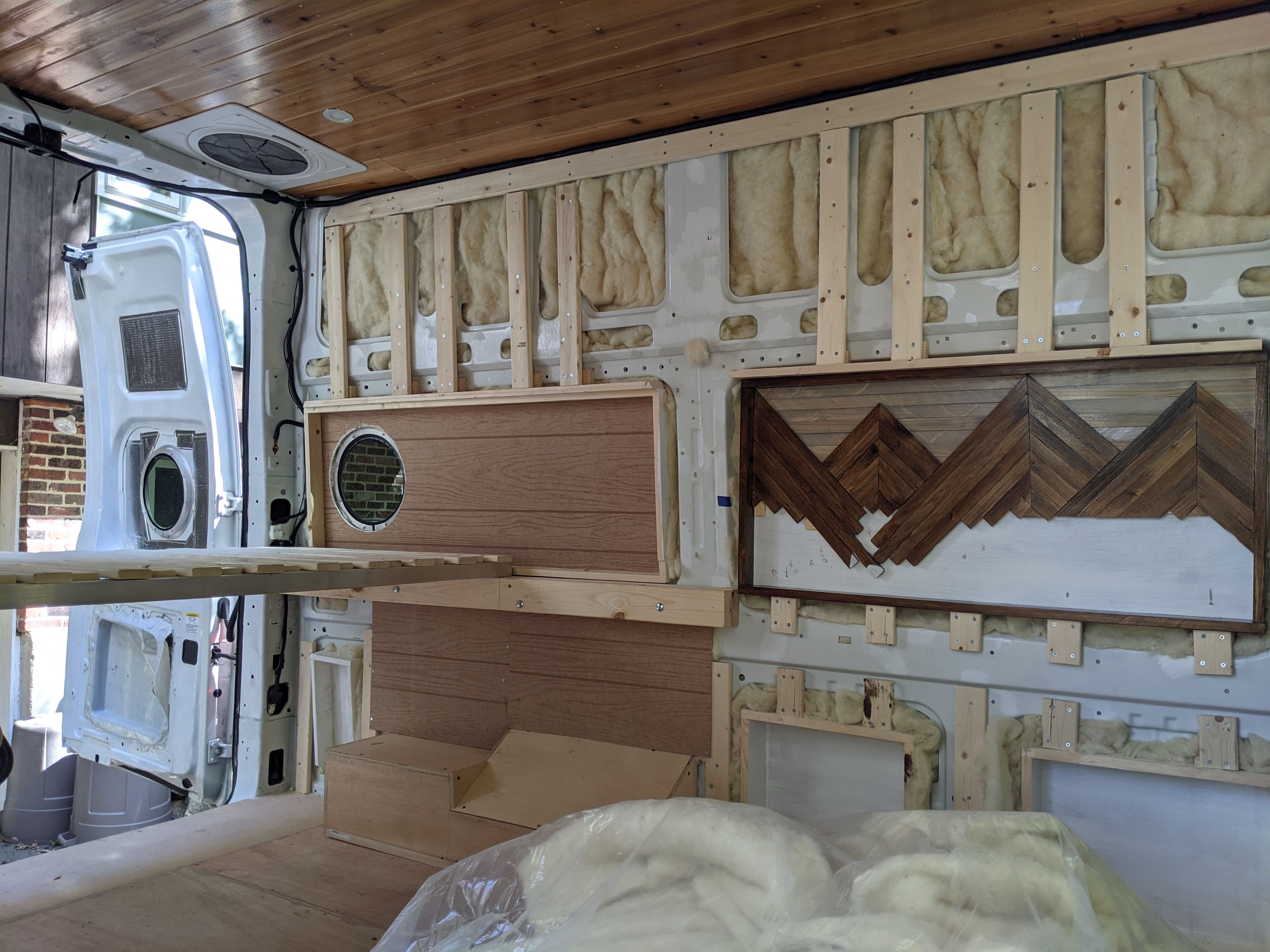 This took a little longer than expected (do I say that in every post? I feel like I might say that in every post. It seems to be a recurring issue for us), but the picture below is what the van looked like by the time we were done. Since then we’ve managed to get most of the wall paneling up, which was perfect timing heading into last week.