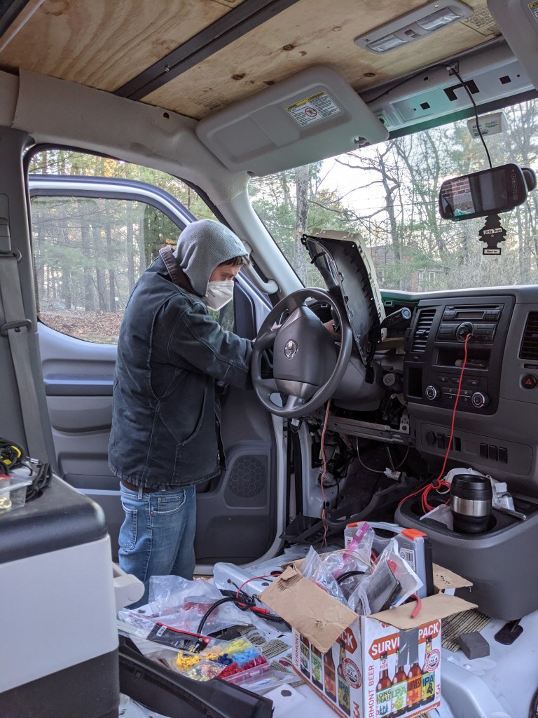 Well, we did it; we finally did it. A few weeks ago we hit the road in our (mostly) complete van! Although, one of our first adventures (if you want to call it that) happened before we even left the driveway. To make a long story short, we bought an alarm for the van and Matt installed the day before we left. It was all hooked up, he tested everything, no issues. He put everything back in the dashboard, tested everything again, and this time the van wouldn’t start. We had a very late night trying to find the issue and ended up going to bed with it unresolved.