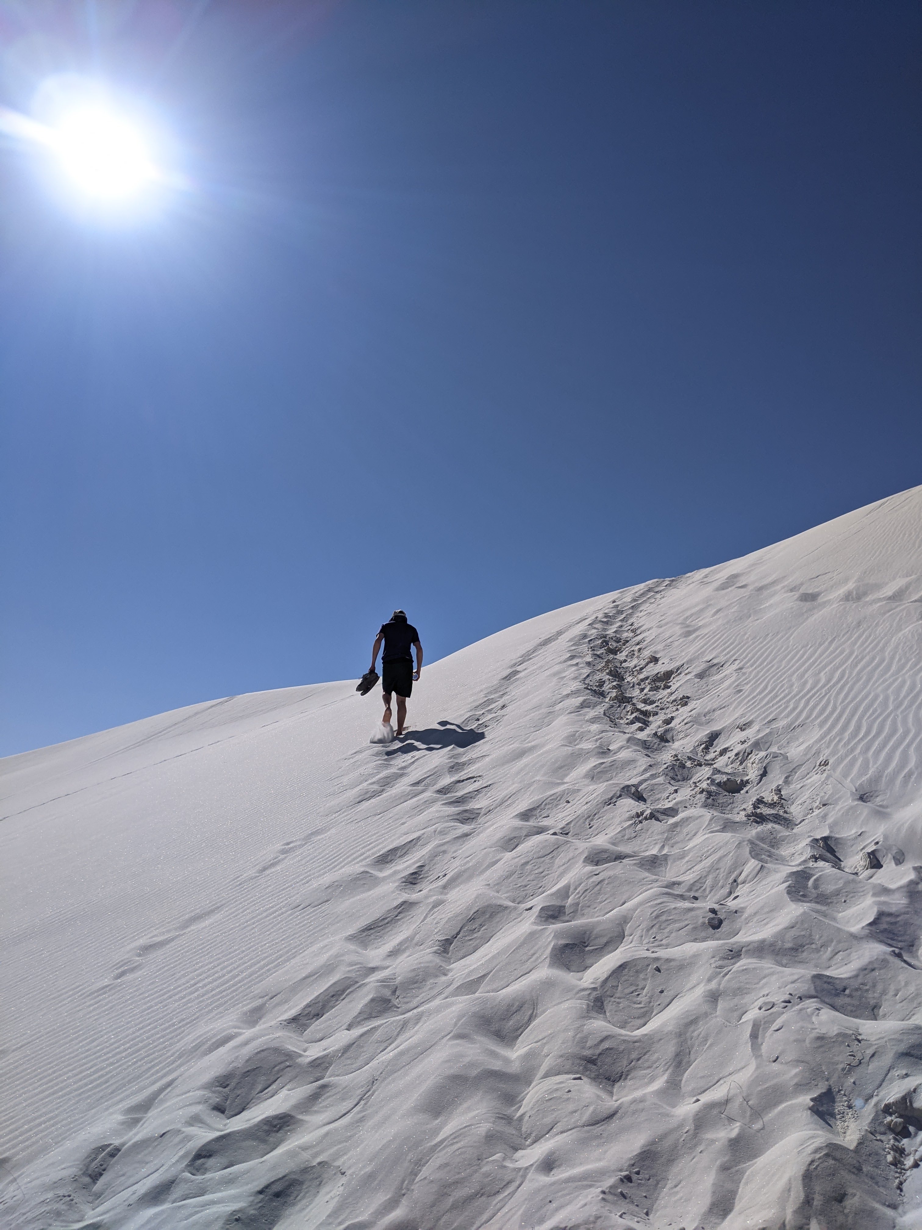 While one of the most popular activities at the park is sledding on the dunes, we opted instead for a hike on the Alkali Flat Trail, the longest trail there (no surprise, right?). Five miles is by no means a long hike, but considering the entire thing is on sand dunes it wasn’t too easy of a stroll either. We only saw two other people on the loop, so it was a great way to just relax and soak it all in. It was also a great way to go through a lot of sunscreen, but hey, no sunburns made an appearance!