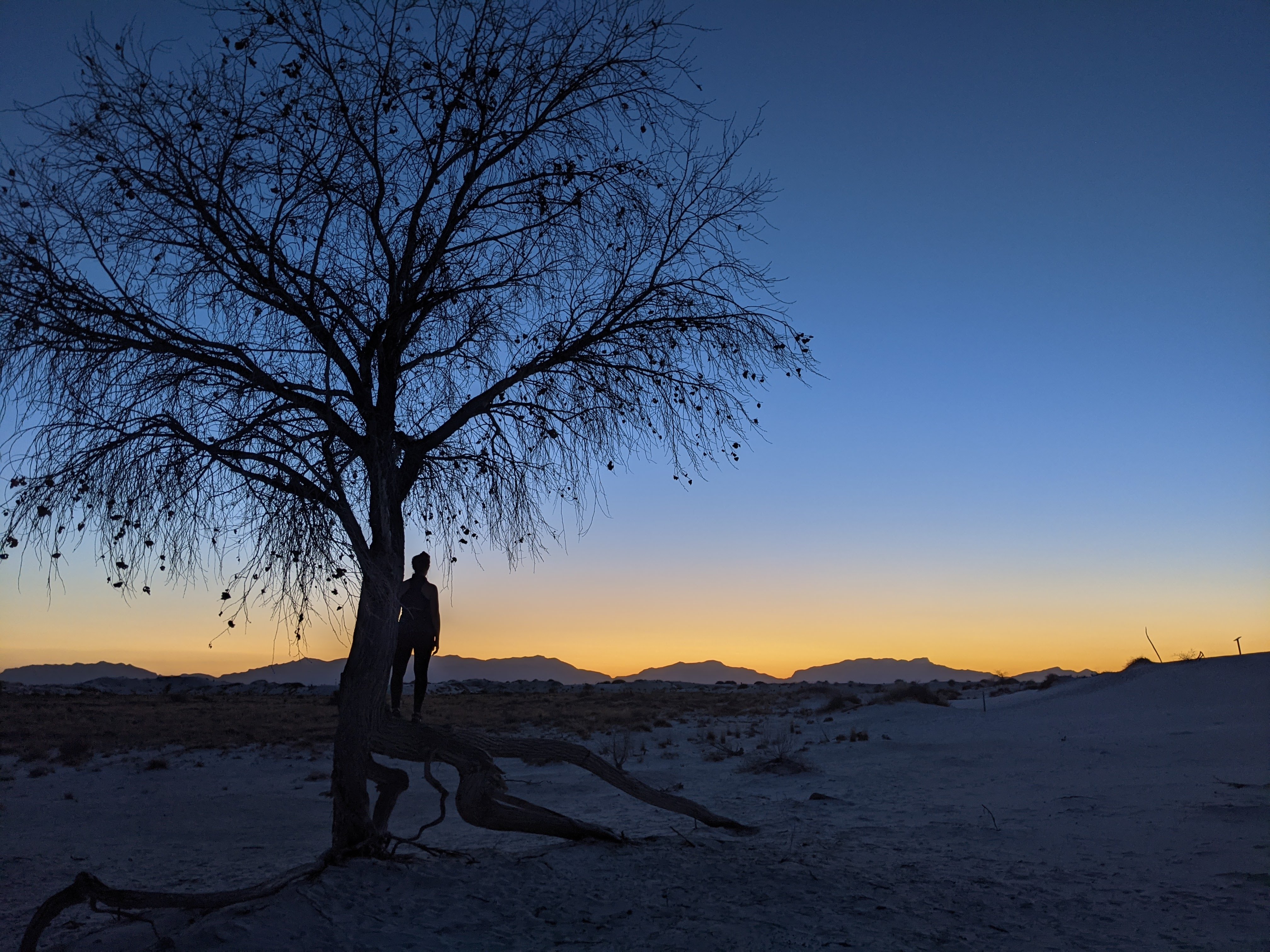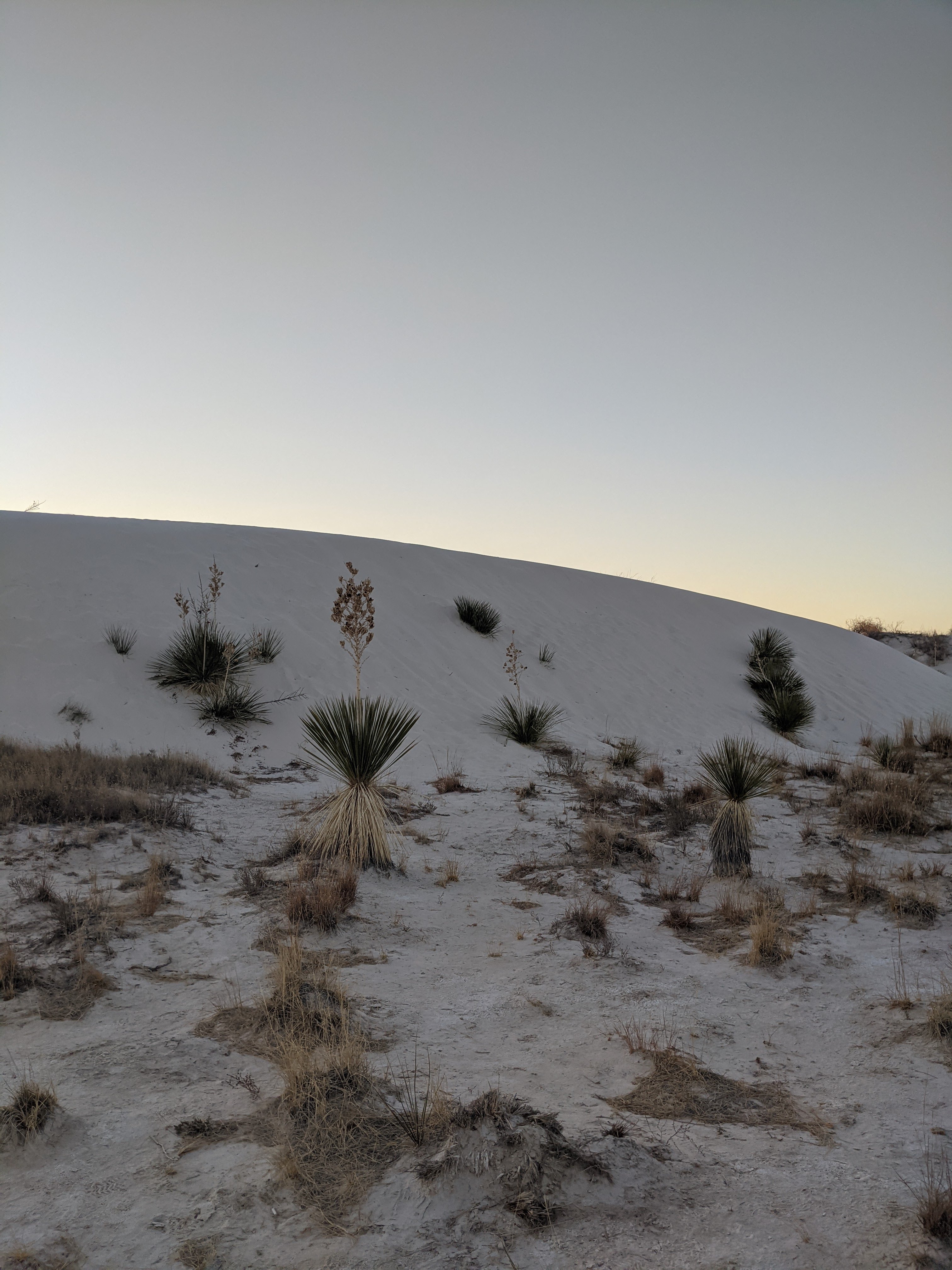 I’m not sure how much you all know about White Sands National Park, but basically the park manages and preserves a large area of New Mexico’s, and the world’s, largest gypsum dunefield. It’s located directly next to a military missile testing facility and consequently is often closed for safety reasons. That said, I don’t know where they draw the line. Despite being open for normal operations, while we were in the visitor center parking lot there was a loud boom that shook the van; people all around us were getting out of their vehicles to see what was going on. To my knowledge no one saw anything, and we didn’t see or feel anything like that the rest of the afternoon, but it still seemed like an odd thing to be considered normal and safe.