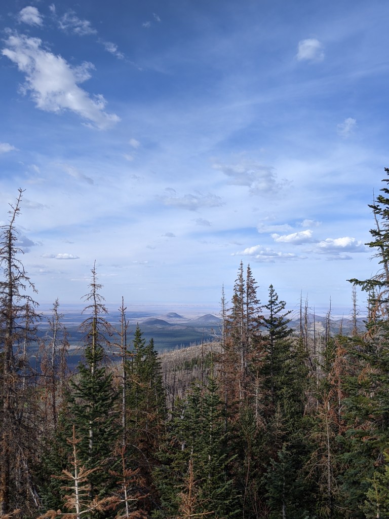 The hike we did after we left the cave was a smooth 9 miles round trip to summit Kendrick Peak, where we got a distant view of the Grand Canyon. We had both recently bought new hiking shoes, so this was a good chance to test them out before committing to any long days and sections with them. Possibly the best part of this particular hike, was that we seemed to have the entire mountain to ourselves, at least as far as human company goes. When we pulled in, the trailhead was empty except for our van and some free range cattle. We didn’t see or hear another person the entire few hours we were out there, which is just the way we like our hikes most days.