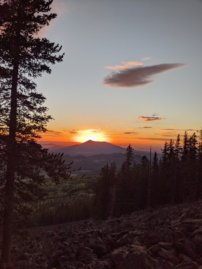 Before we left the southwest we fit in a few great training hikes. I wanted to hit Petrified Forest National Park before we flew out (which I’ll try to write a post about before we take off), so after we visited that we went into Flagstaff and the surrounding national forests for a few days. That’s where we were for Matt’s birthday, which we celebrated by exploring a lava tube cave and then hiking a mountain a few miles down the road.
