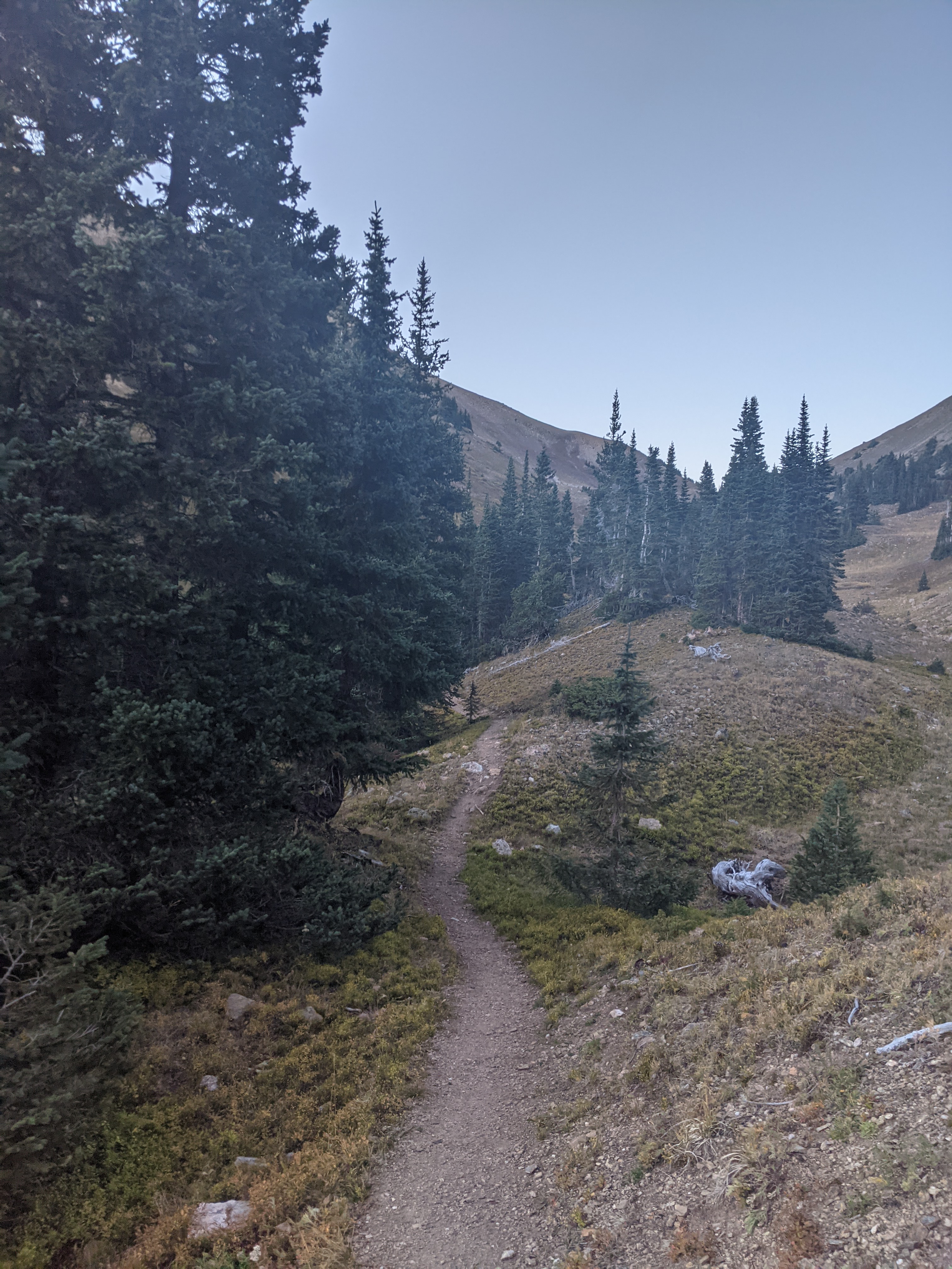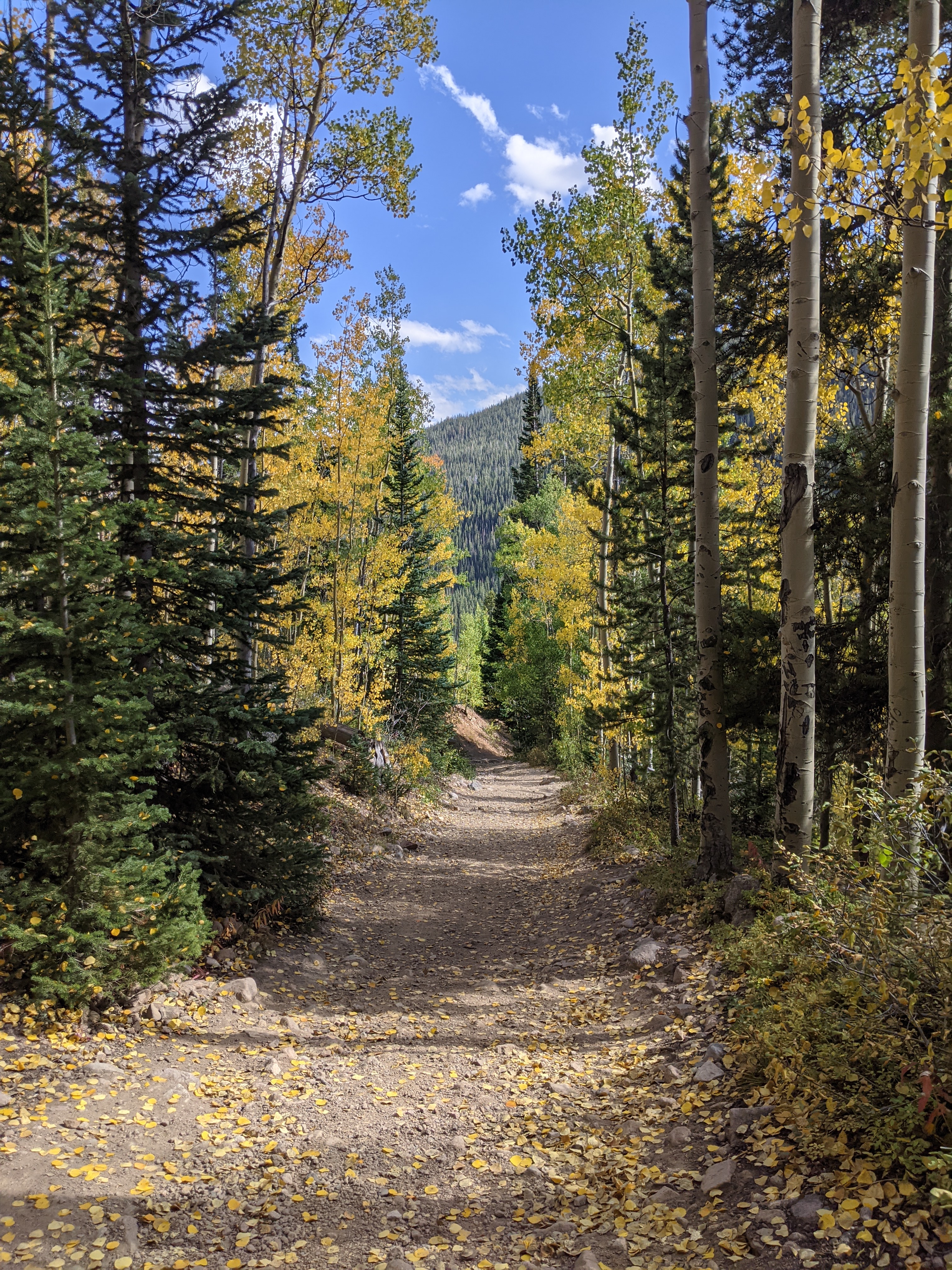 It was a beautiful ridge, too beautiful to be ruined by the cold wind we fought the entire time we were up there. As we left the final peak and began our descent into the valley and towards the trailhead, we got our first real look at fall in Colorado. We had been at such high elevation for so long that we hadn’t really noticed the changing season. Back in the Tetons we had started seeing our first signs of fall above 10,000 feet. We’d felt like we were following that early change since then, but the final several miles before the road were the first time we felt like we were truly in a different season seeing how many Aspens were turning yellow.