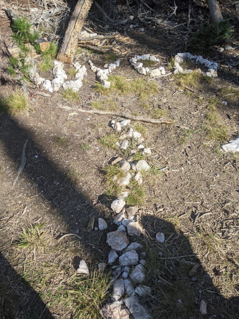 One of our first real Colorado climbs was up to our highest point so far on trail. There were many points along the entire CDT where the trail was not immediately clear for southbound hikers; this climb was one of those points. The picture below on the left was one of the few stretches on this uphill where there was a path to follow. At the summit there was a small hut, covered in the signatures of countless hikers over the years. From there the trail followed the rocky ridge for a while before dropping back down into the trees.