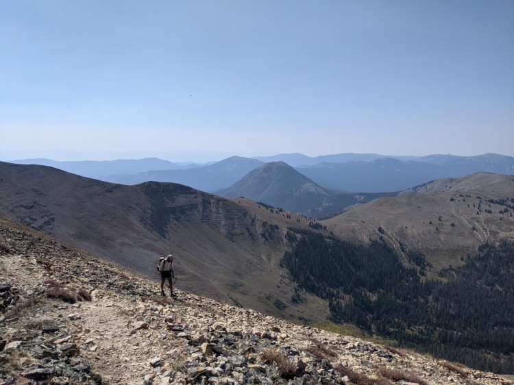The CDT route was only open to overnight backpackers, so even though the distance would have been manageable for us to do in a single day, we had to settle for two short days with one night in the park. We also could not convince the park ranger who issued our permit that we could in fact make it up and over the ridge on our first day, so they put us at a campsite just below the final climb. As a result we hiked a mere 8-10 miles our first day, leaving us to hike the highest stretch the following day in freezing rain.